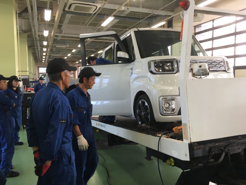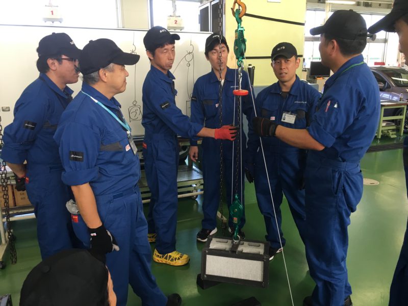 その後2グループに分かれ「積載車を使用してのウインチの取り扱い」、「定滑車、動滑車の組み合わせ方によるワイヤーへの荷重の掛かり方と巻き上げスピード」について実技で確認。本日も 良い勉強になりました。
