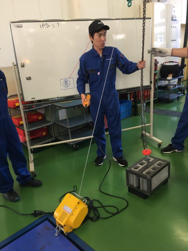本日も学内で教員対象の「巻き上げ機の運転の業務特別教育」です。