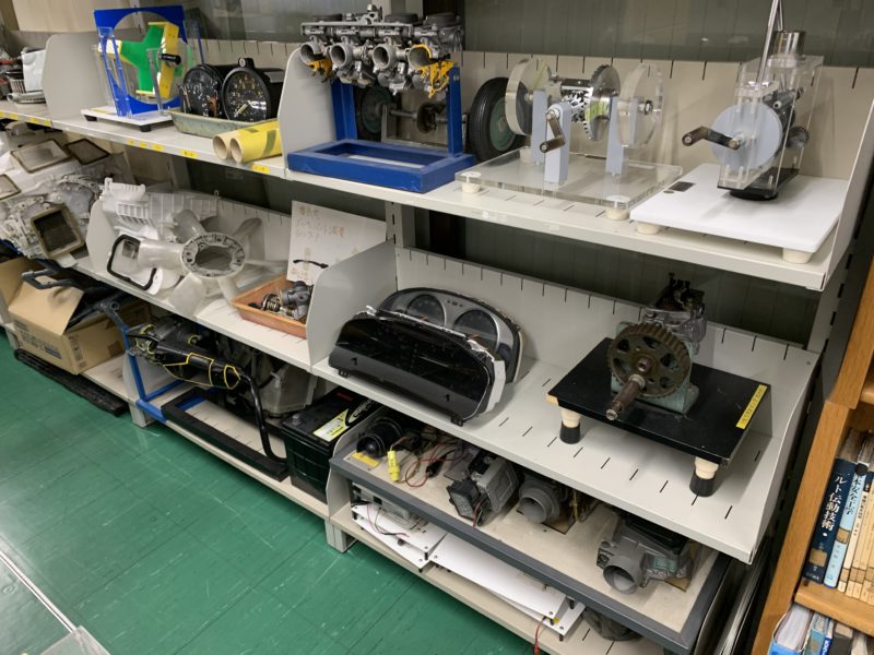 学科授業だって現物を見た方が分かりやすいのは当然です。昨年までA棟4Fの実習室の後ろに現物教材を置いていたのですが、他のクラスが授業しているときには使用することが出来ませんでした。本年度よりA棟3Fの一画に移動し何時でも使用でき、整理整頓したので使いやすさも向上しました。今後も現物教材を上手に活用し、わかりやすい授業を目指します。(yagawa)