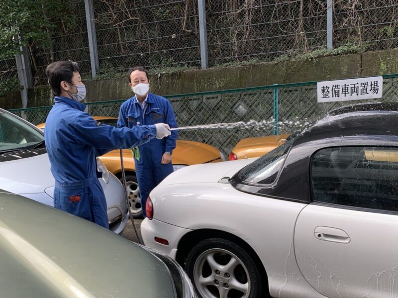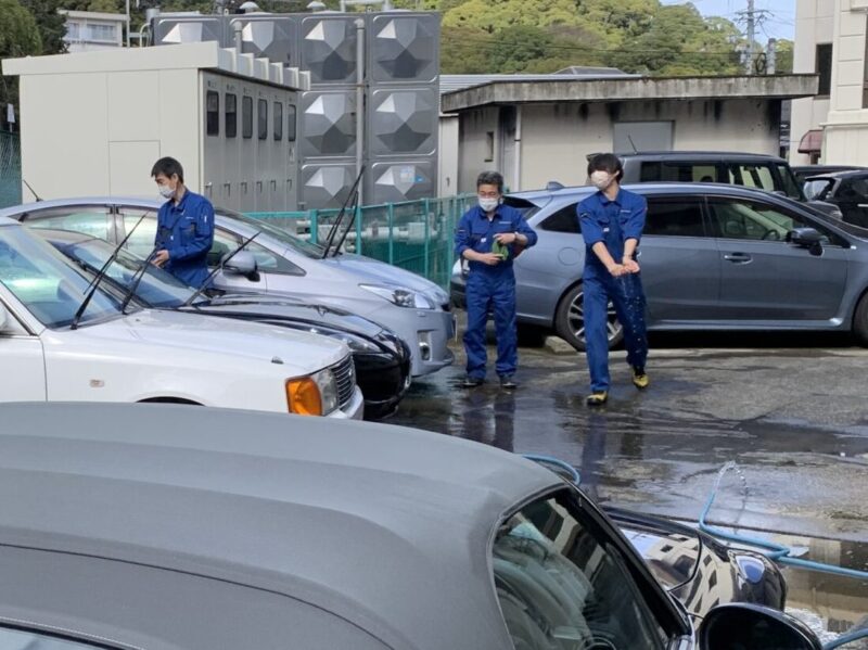 学期の切り替わる時期に、教材車の入れ替えをするのですが、その前に職員総出で洗車をするのが恒例行事となっており、昨日の体験実習の後、職員総出でまたまた洗車です。