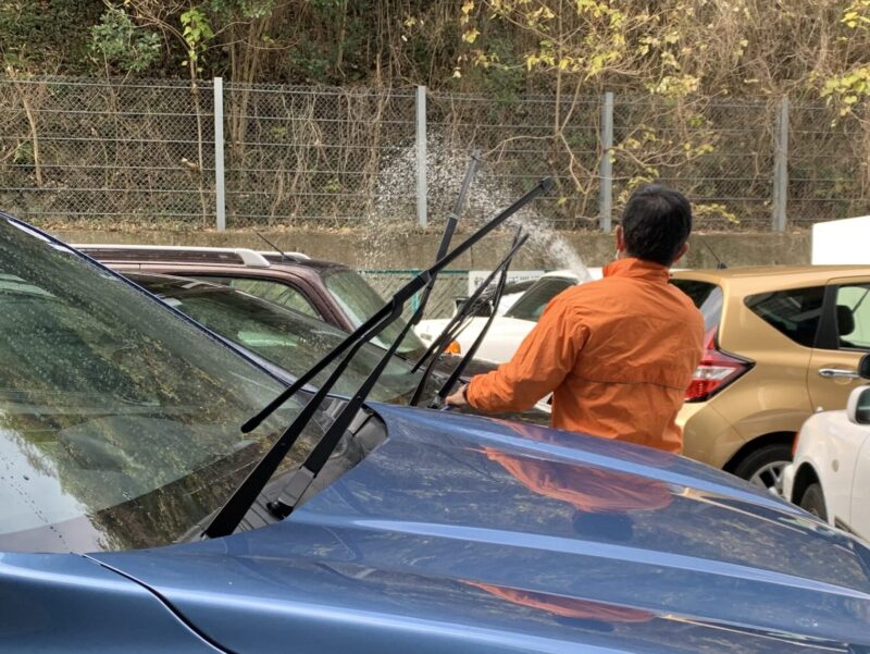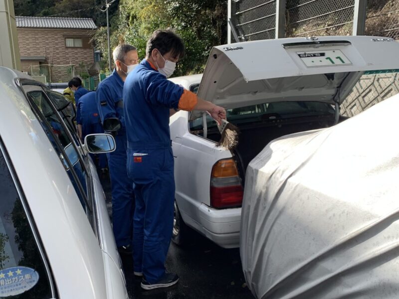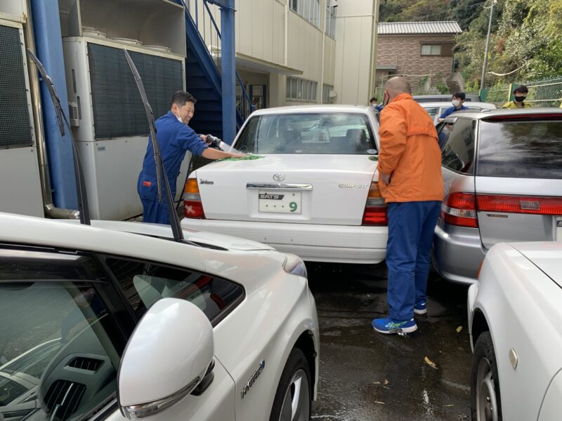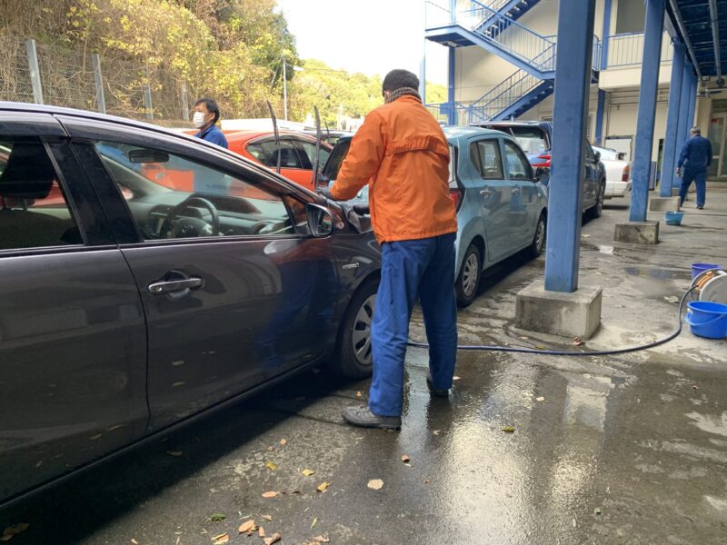 学期の切り替わる時期に、教材車の入れ替えをするのですが、その前に職員総出で洗車をするのが恒例行事となっており、本日、寒空の下で職員総出の洗車です。