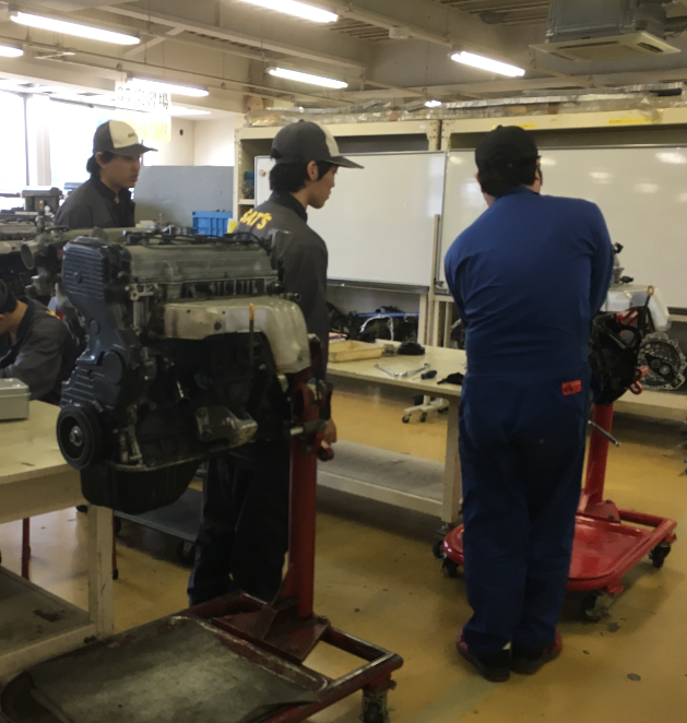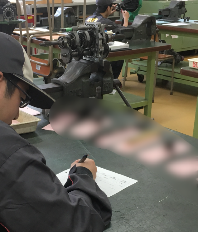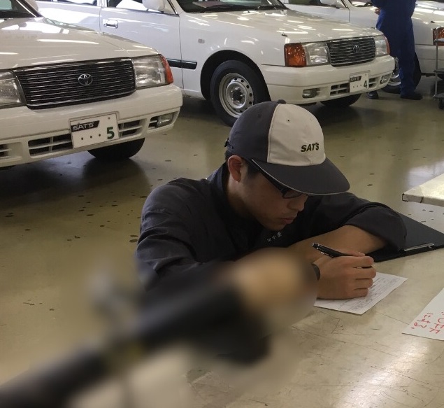 本日、自動車整備科1年生のAクラスBクラスは実習の最終日なので試験です。