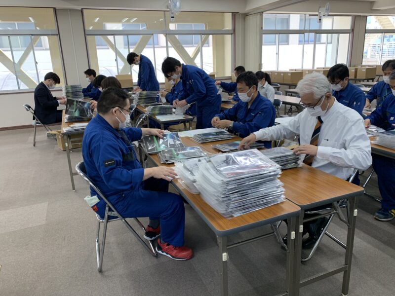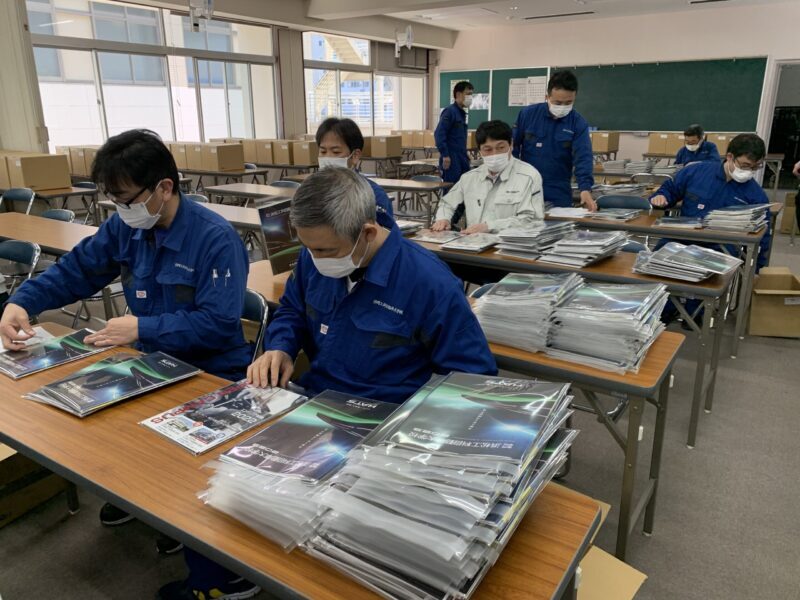 本日4月8日は、新年度の準備として広報活動に使用するパンフレットが出来上がったので、その発送準備です。皆で分担し静岡工科、浜松工科のパンフレットの封を閉じ、宛名インデックス、宅配シールの貼り付けです。自動車整備に興味がありパンフレットの郵送を希望する方はお届けしますので是非ご連絡ください。(yagawa)
