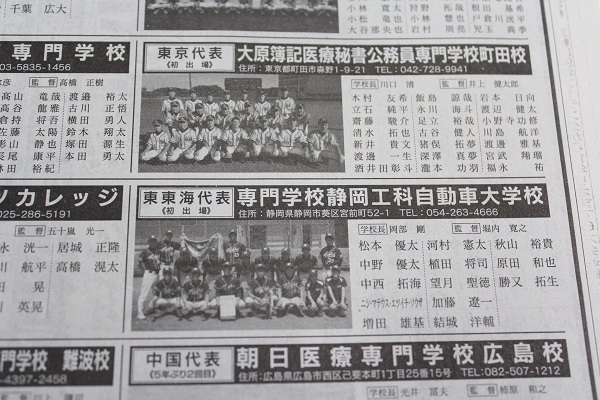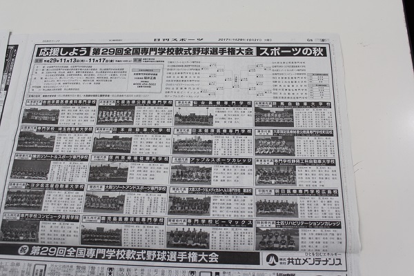 10月31日(火)の日刊スポーツ新聞に第29回全国専門学校軟式野球選手権大会の出場校が掲載されました。