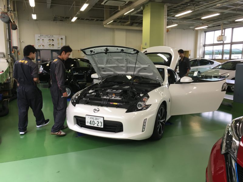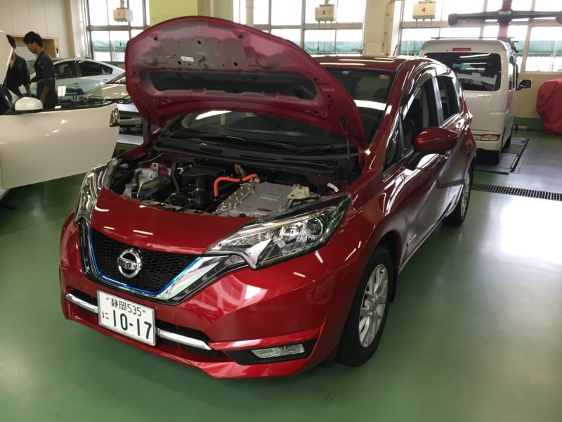 21日(金)の昼休み、本校実習場(あいにくの天候につき)で静岡日産様、プリンス静岡様、浜松日産様による車両展示がありました。