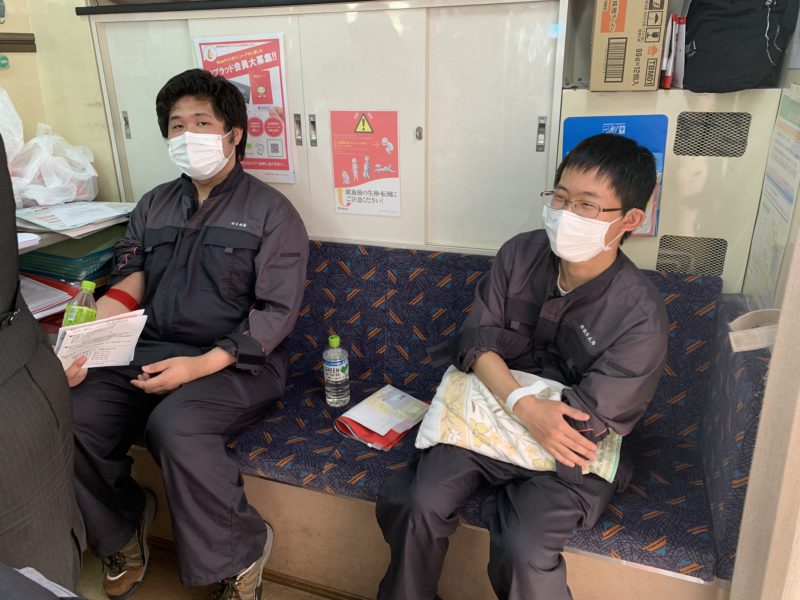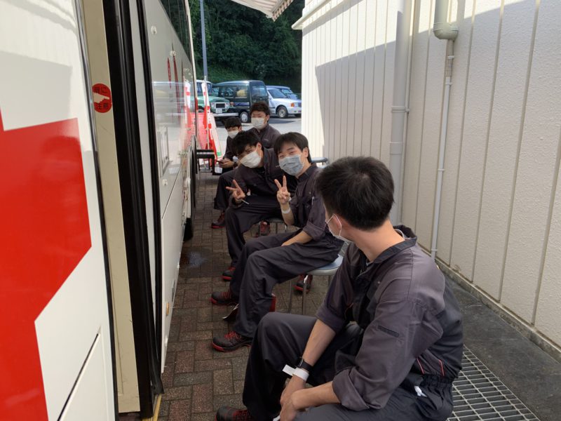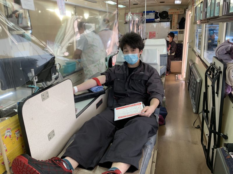 本日、献血車が来て構内で学生、職員が献血に協力しました。本校では半数の学生が実習授業、残りの学生が学科授業を行い、決まった周期でローテーションします。今日は実習ローテーションの学生たちが授業の合間に協力しました。私が献血車のところへ行ったときには1年生が協力してくれ、バスの外まで列ができていました。(yagawa)
