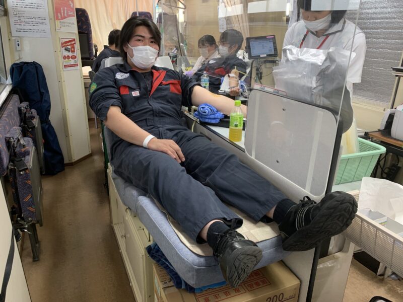 本日、本校に献血車が入り、学生、職員が献血に協力しました。本校では半数の学生が実習授業、残りの学生が学科授業を行い、決まった周期でローテーションします。今日は実習ローテーションの学生たちが授業の合間に協力しました。献血車へ行くと自動車システム工学科4年生が献血中でした。皆さんご協力ありがとうございました。(yagawa)
