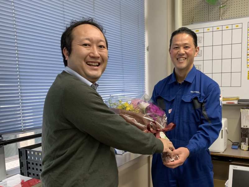 静岡トヨタ様から本校の教員としてお越しいただいていた望月先生が本日で任期を終えました。本校では主に実習のお手伝いをしていただき、現場での経験を活かした実践的な技術の教授をいただきました。昨今の新型コロナの影響で街中での歓送迎会は中止となってしまいましたが、本日の朝職員室にてプチ送別会を行い、なぜか美女からではなく瀧先生から(笑)花束の贈呈。ご挨拶の最後は静岡トヨタ復帰後の配属先を伝え「整備のご用命と新車購入の際は・・・」とちゃっかりPRも忘れていませんでした。(笑) 望月先生有難うございました。(yagawa)