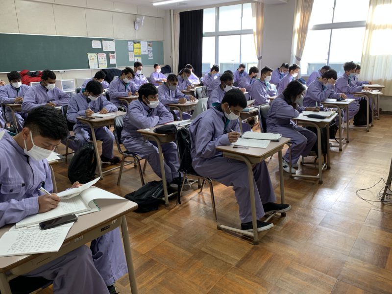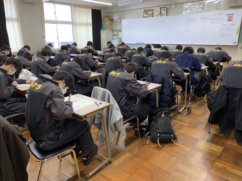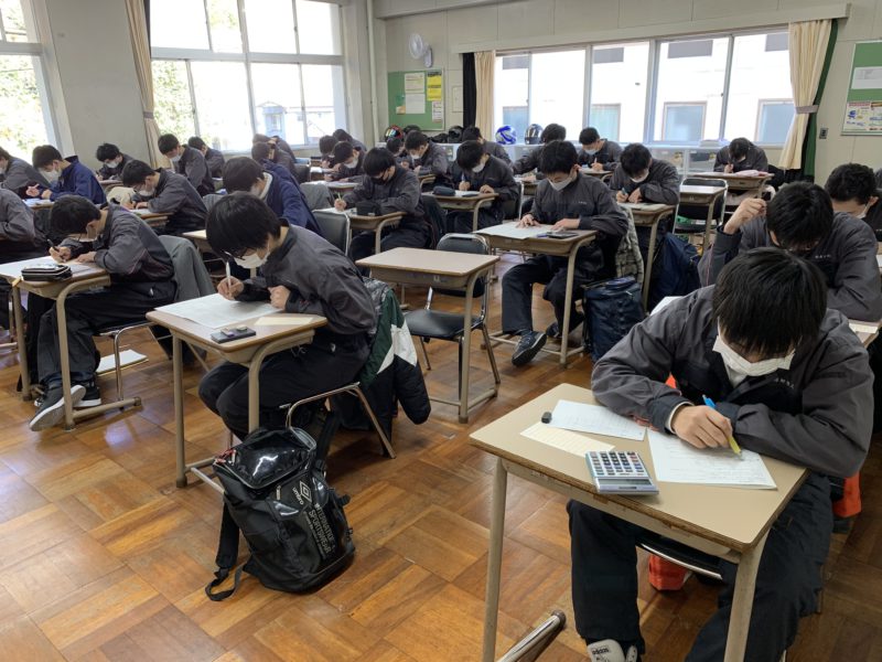 例年は武道館に学生が一堂に会し学校長より新年の挨拶があるのですが、今年はリスク回避のため学生は各HR教室でリーモートによる校長挨拶を受けました。その後それぞれのクラスで科・学年ごとに模擬試験やその解説、履歴書作成などを行いました。今年も困難を乗り越え、みんな頑張ろう!(yagawa)