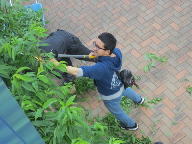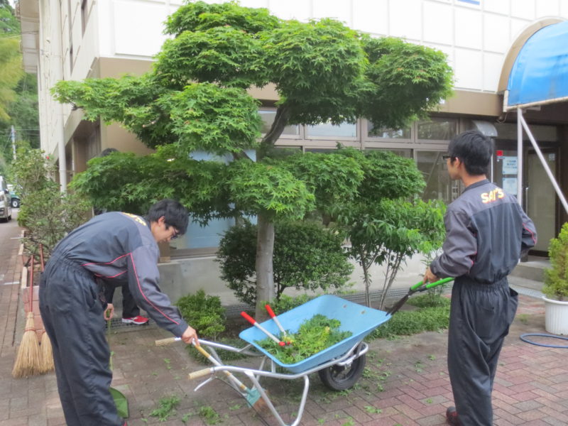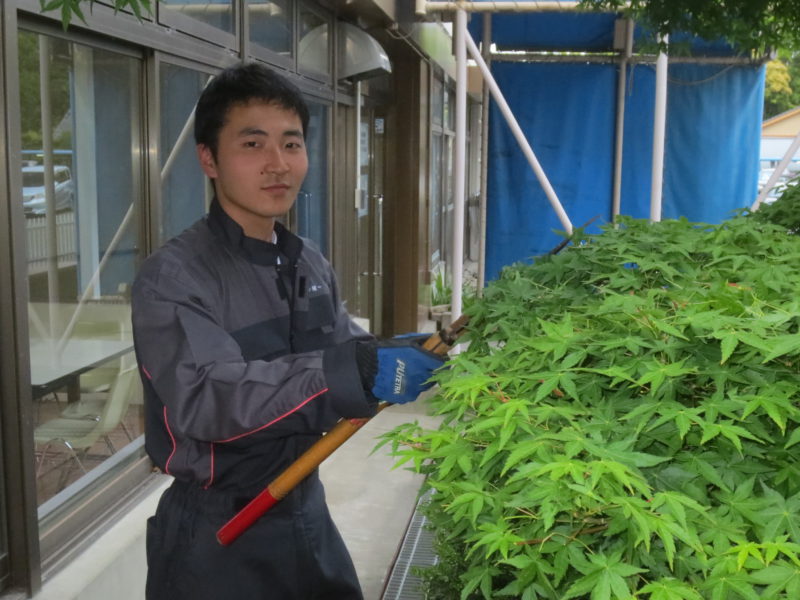 5月恒例の、植木の剪定を行いました。今回は4人での活動でしたが、上級生が多く作業はスムーズに進みました。おかげで、すっかり夏仕様になりました。