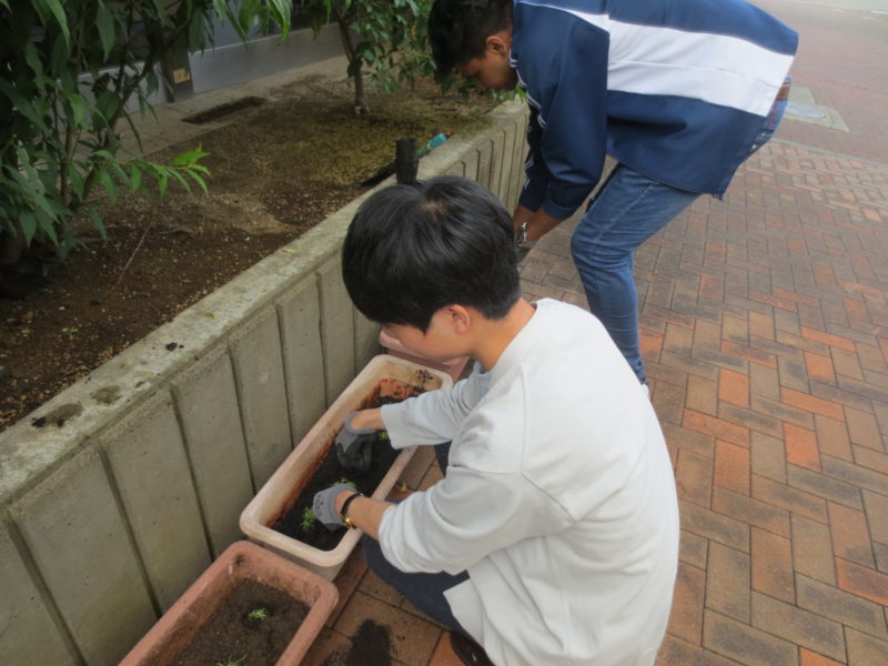 そして、後日、新しいネイチャーたちを植えました。『花オクラ』に『宇宙芋(そらいも)』、そして『コキア』です。部員一同、芽が出て大きくなる日を楽しみにしています。(顧問:渥美)