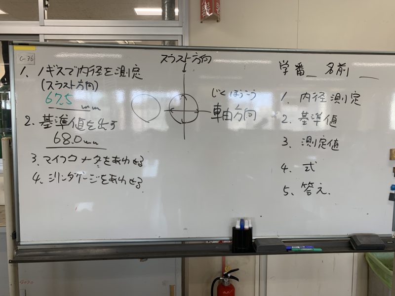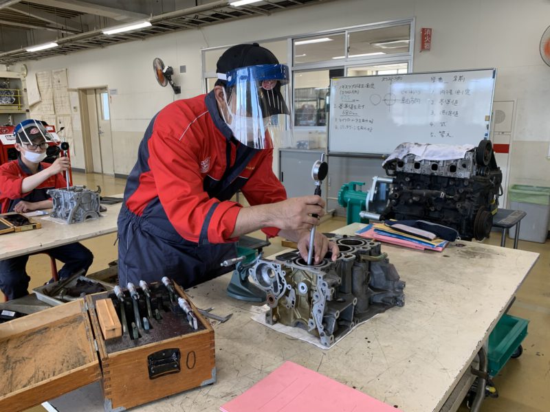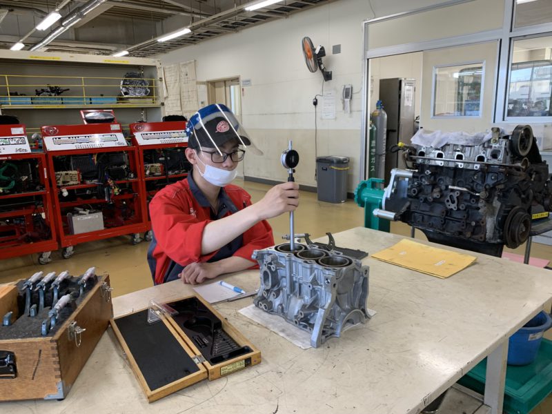 昨日から対面授業が始まった国際オートメカニック科1年生。伺うとシリンダ・ゲージを使用して指定された箇所の内径を測定する小テストの真っ最中。この作業、工科検定などで実施してもなぜか忘れている学生が多い作業。頭の中にしっかりと手順を思い浮かべ自然に作業できるように、「テストに出す」と宣言し反復練習させるのですが、時間が経つと忘れちゃうんです。今回のこの試験が終わっても、しっかり覚えていてくださいね。(yagawa)