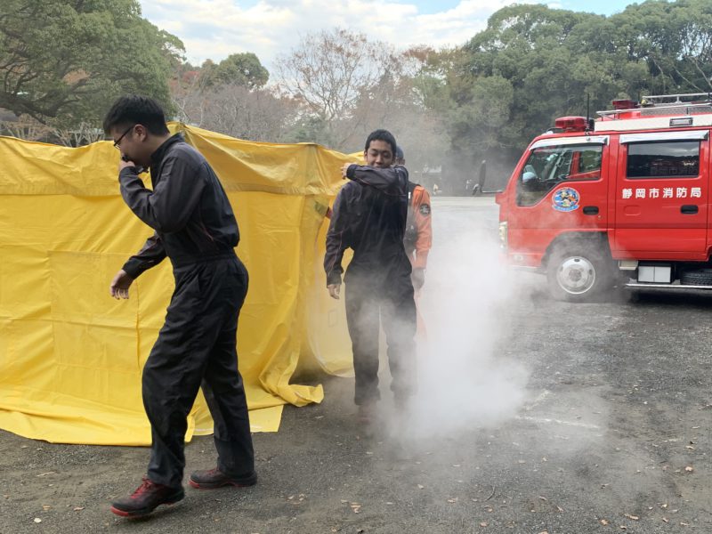 6月に実施した火災避難訓練は避難の訓練、避難場所の確認は出来たものの、諸事情により消火訓練、スモークマシン体験、避難救助袋使用訓練、起震車体験を行わずに終わっていました。ということで昨日、システム科、整備科の2年生が起震車体験、避難救助袋脱出訓練を、システム科、整備科の1年生が消火訓練、スモークマシンの体験をしました。皆、楽しくも真剣に訓練に参加していました。(yagawa)