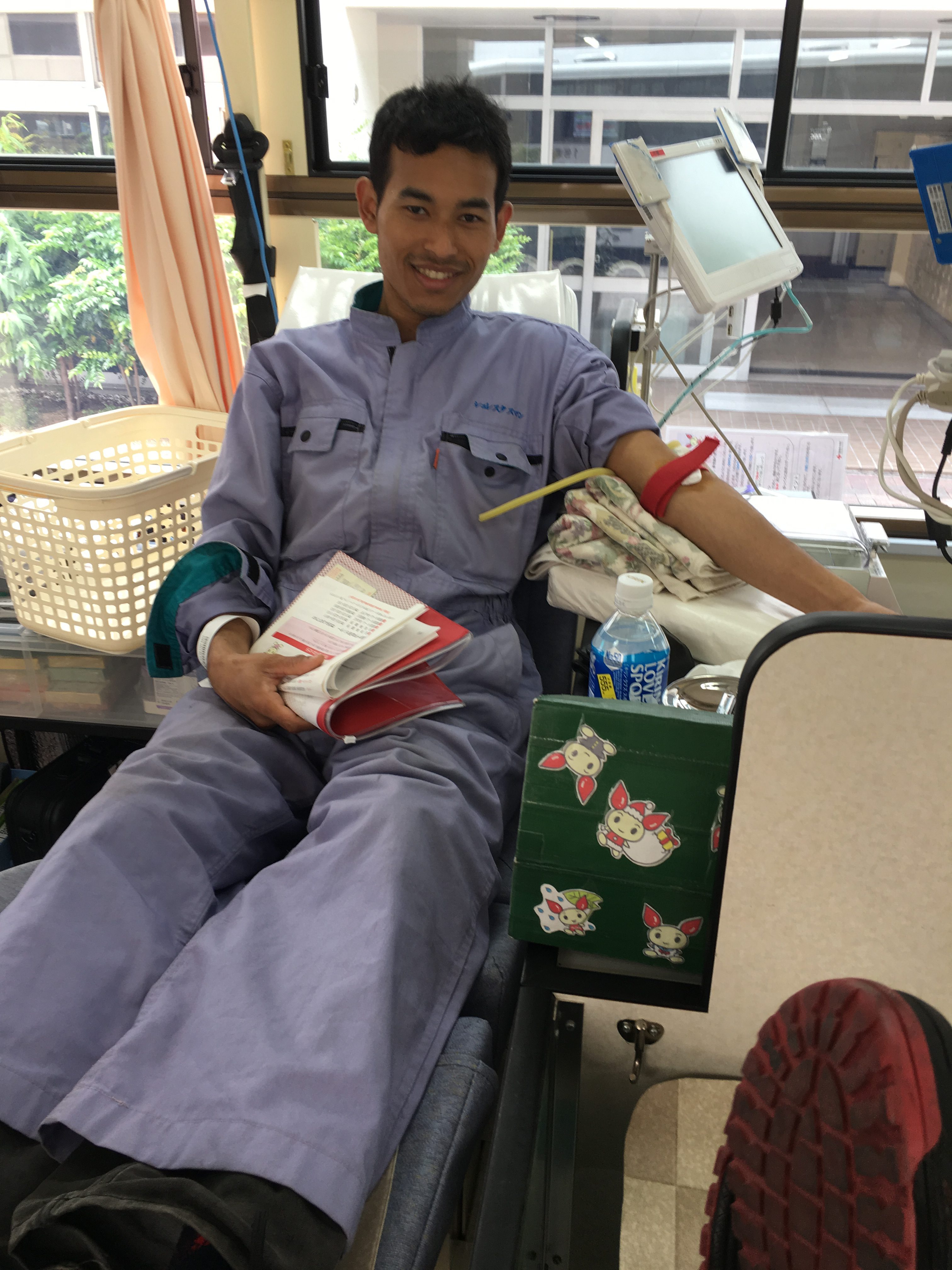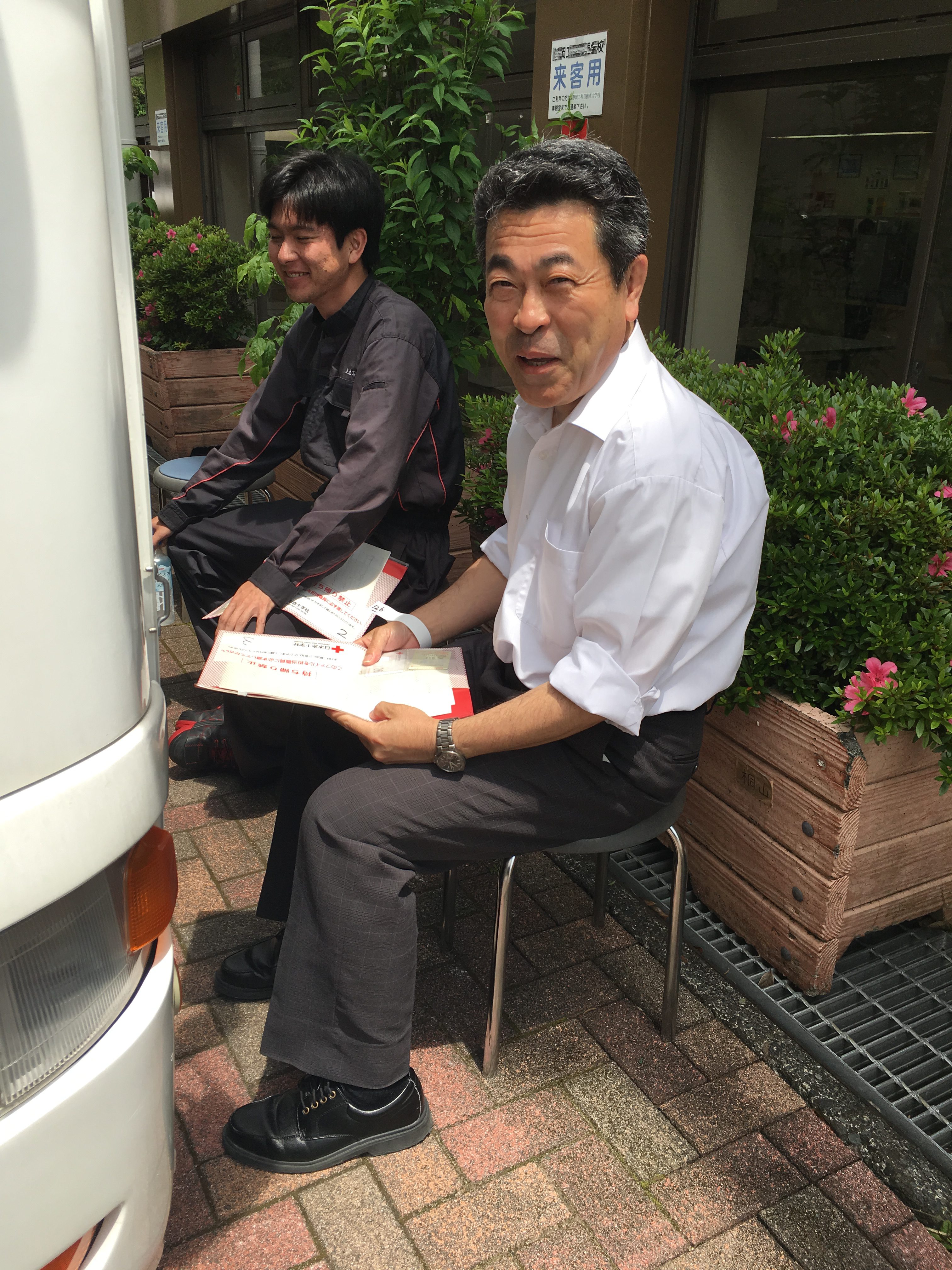 献血センターより1年に2回春と秋に献血の依頼があり本校でも協力しています。今回はその1回目として朝から献血バスが2台本校の施設内に並びました。協力者はクラスごとに順番に受付をして献血車の中に入っていきました。職員、学生共に積極的に協力し最終的には115名が受付、実際に献血した者が105名(うち87名が400cc)と多くの人が協力してくれました。