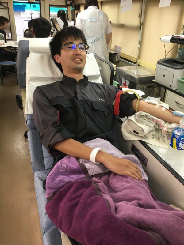 本校は全学生の半分の学生が実習授業をしている時にもう半分の学生が学科授業をしています。概ね1週間で学科と実習を入れ替えます。実習中の学生が献血に協力するので前回5月17日に学科だったグループが今回実習となり新たに献血をしてくれました。今回は118名が受付し104名が献血できました。結局半数の学生が献血に協力してくれたことになります。みんなありがとうね!