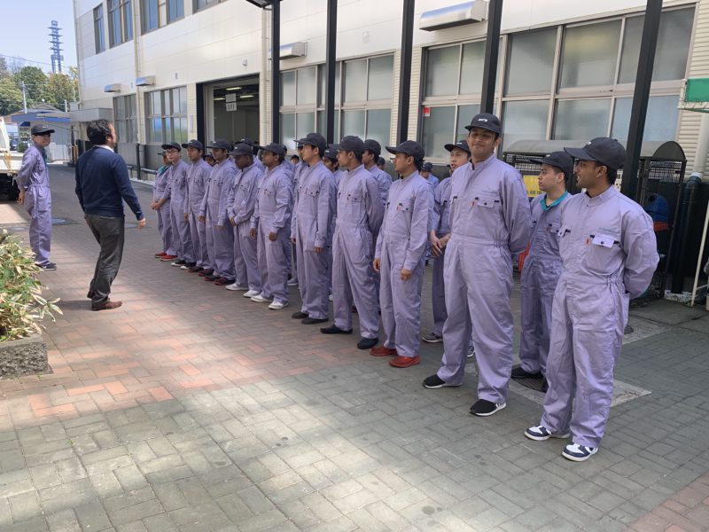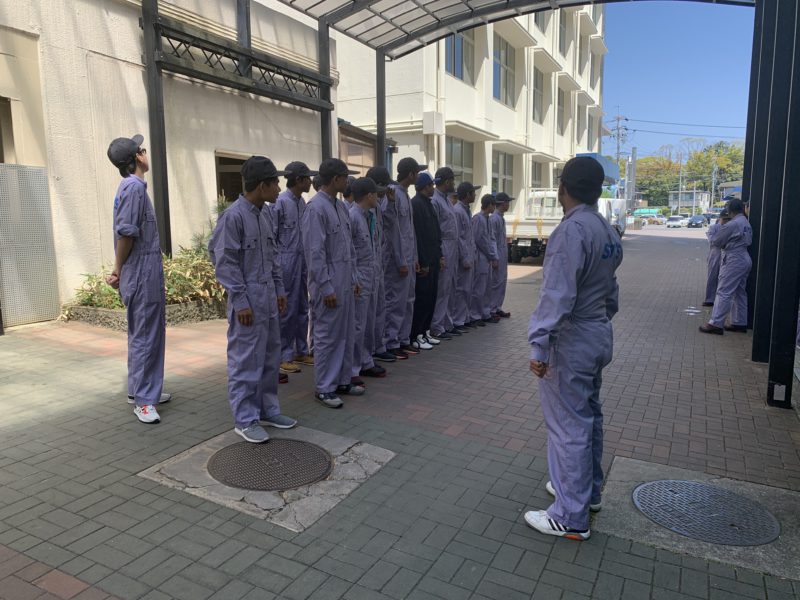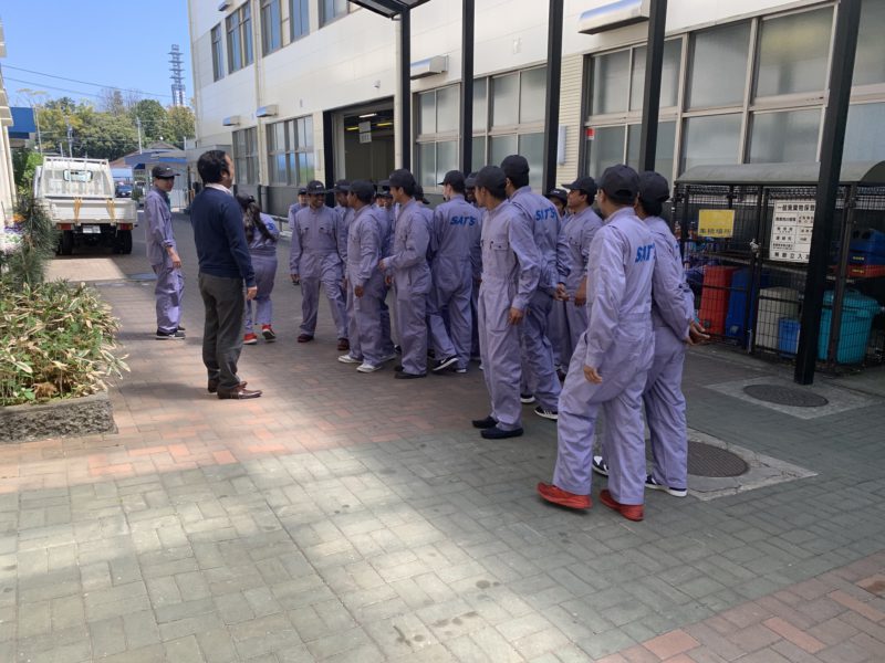 本日留学生のクラス「国際オートメカニック科」の1年生が整列訓練をしています。整列は実習授業の開始時と終了時に教員が集合を掛けると2列横隊に並び人数掌握をするために行います。(日本人クラスも行います。)入学式から1週間、担任の瀧先生ワールド全開で留学生をまとめています。(yagawa)