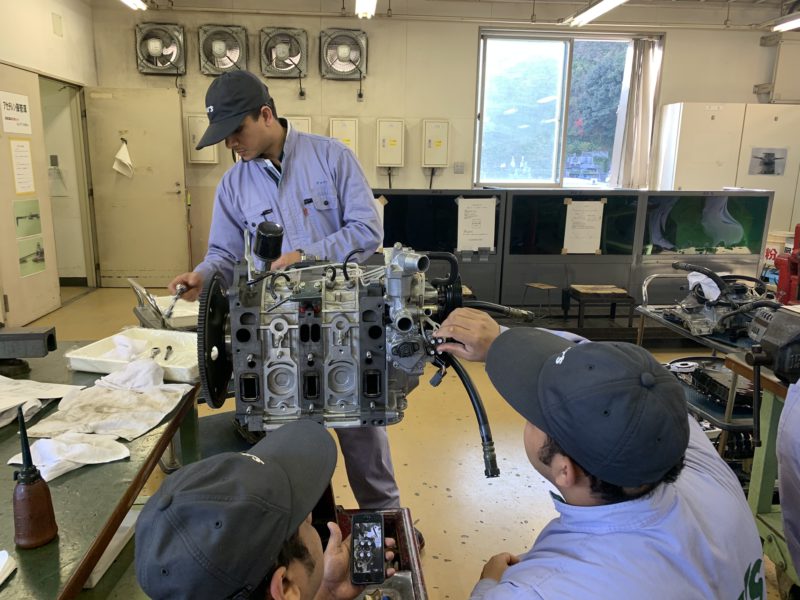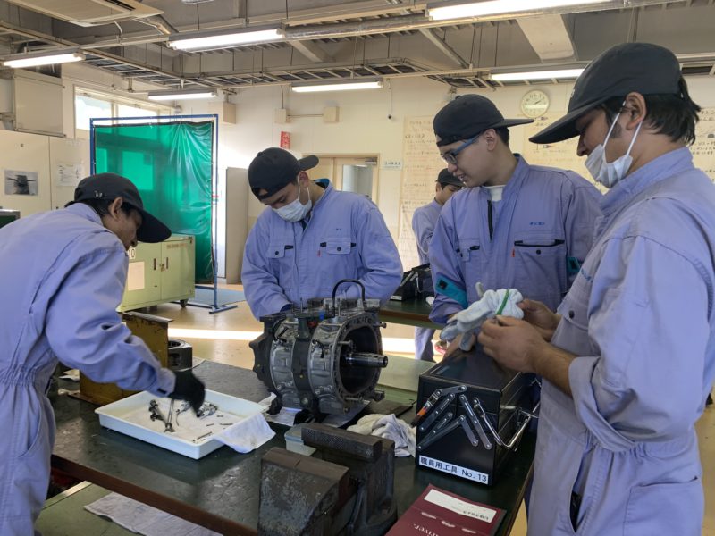 静岡は2週間で今年も終わりとは思えない陽気です。日本人の科は実習も終わり学科の科目認定試験の真っ最中です。学科試験中の写真をカシャカシャ撮るのも申し訳ないので、閑散とした実習場でも撮ろうかと行ってみると留学生がロータリーエンジンを分解しています。卒業研究ということで自由なテーマで勉強しているようです。とはいえみんな相変わらず元気いっぱいです(笑) (yagawa)