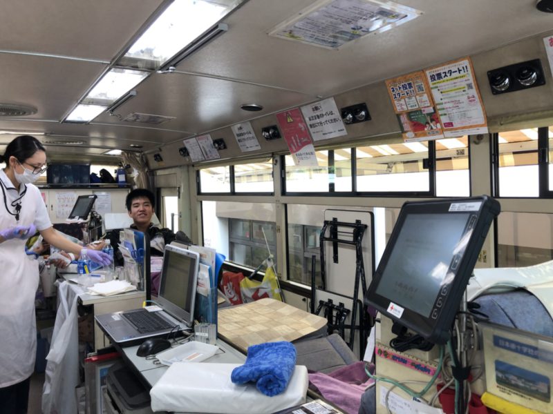 10月3日に引き続き、昨日も献血車が本校に来ての献血です。前回、実施しなかったクラスの学生が献血に協力してくれ今回は111名が受付し104名が実際に献血(400ml:98名、200ml:6名)してくれました。協力してくれた皆さんありがとうございました!(yagawa)