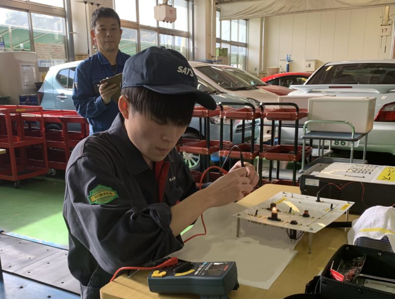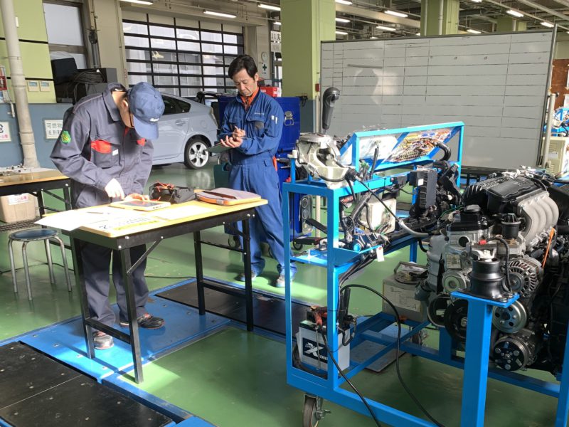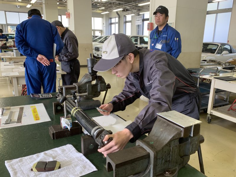 昨日に続き本日も「工科技能検定」です。改めて説明すると、国家検定の実技試験に準じた実技検定を本校独自に行うものです。今日は自動車システム工学科の3年生が準1級を、自動車システム工学科、自動車整備科の1年生が3級を受験しました。今日も皆良い緊張感の中頑張って問題に臨んでいました。(yagawa)