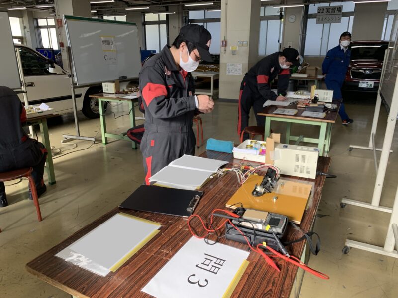 掲載が遅くなってしまいましたが、昨年の20日、21日の2日間「工科技能検定」という実技検定を実施しました。これは国家検定の実技試験に準じた実技検定を本校独自に行うというもので今年で5回目となります。今日は20日の自動車システム工学科4年生の1級受験の様子と、自動車システム工学科、自動車整備科2年生および国際オートメカニック科3年生の2級受験の様子をお伝えします。良い緊張感の中、今まで培ってきた知識&技術を駆使し問題に臨んでいました。(yagawa)