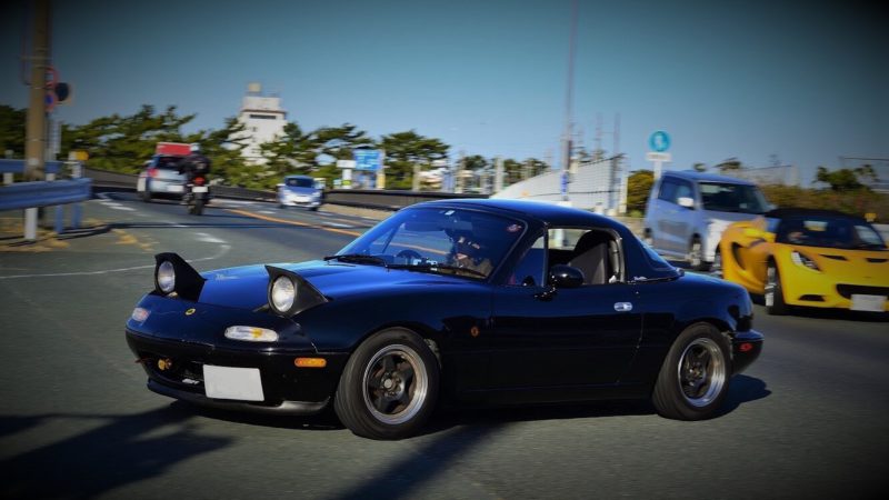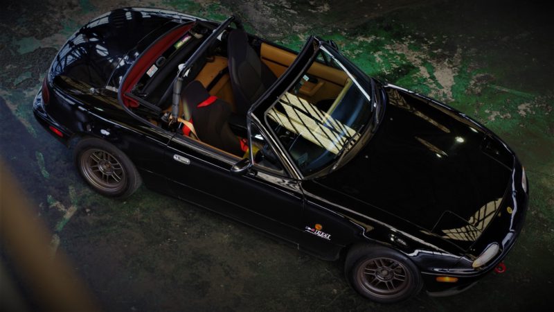 現在4代目となるロードスターの1989年にデビューした初代となるモデルです。小さな車体にほどほどのパワーのエンジン、凝った作りのサスペンションで決して早くはないけれども乗って楽しい車です。当時のキャッチコピーは、「だれもが、しあわせになる。」 乗るとこのキャッチコピーの意味を感じます!
