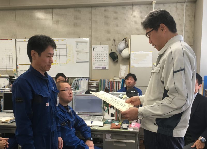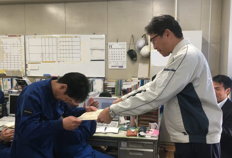 昨日、交通安全協会と安全運転管理協会の合同表彰式があり、本校の岡村宗和先生と鈴木希先生が優良運転者として表彰されました。岡村先生は16年間無事故無違反ということで、10年以上無事故無違反者に送られる連名表彰(注1)され、本日の朝礼で表彰状を校長が代読し職員に披露しました。