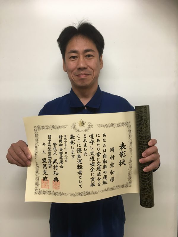 ※注1:静岡中央警察署長と静岡中央地区安全運転管理協会長の連名のよる表彰です。