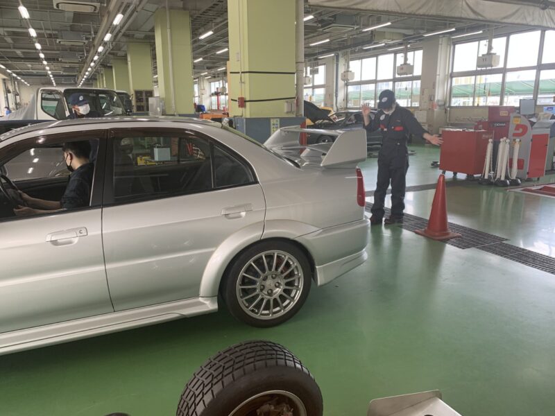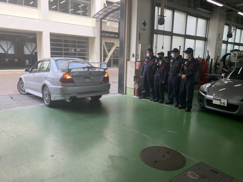 自動車システム工学科1級エンジニアコースの学生たちは、2級自動車整備士の資格(2G、2Dの両方)を取得して3年生に進学します。真新しいいツナギでみんなウキウキ元気なので写真をパチリ!3年生になると整備士資格があるので本校(指定工場・認証工場です。)のメカニックとして登録し、ナンバー付の車両の点検や車検を行います。今日はお客様の大切なお車に傷をつけない様に、教材車両を使用して車庫入れ&誘導の練習をしています。マニュアルのスポーツ車を使用しているので、悪戦苦闘しています。悪戦苦闘している姿もパチリ!(yagawa)