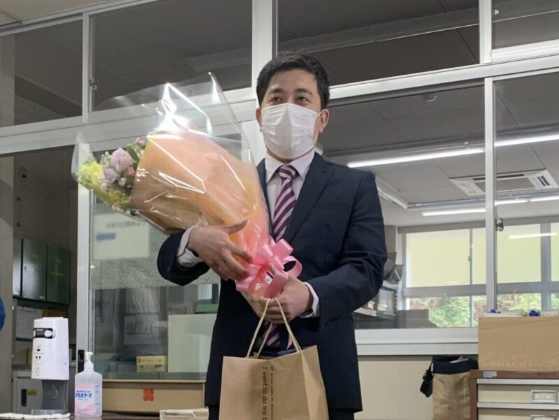本年度末で池原先生が退職となります。新型コロナウイルスの感染症対策の影響で、外部での歓送迎会は行えませんので、本日の朝、職員室にてささやかではありますが送別会を開きました。沖縄出身の池原先生は本校に入学し、卒業後そのまま教員としてご尽力いただきました。退職後も静岡にいらっしゃるとのことです。13年間ありがとうございました。(yagawa)