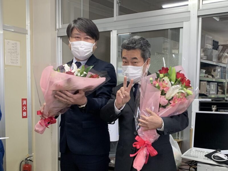 本年度末で高柳先生(写真右)、谷河が定年退職となります(ふたりとも来年度も再雇用となりますが…)また藤池職員(左)が静岡県自動車学園に移動となります。数年ぶりに本日の夜、送別会を開いていただけるのですが、谷河を除くお二人はご都合が悪いようですので本日の朝、職員室にてプチ送別会がありました。お二人ともお疲れ様でした。そして来年もよろしくお願いいたします。(yagawa)