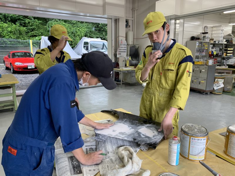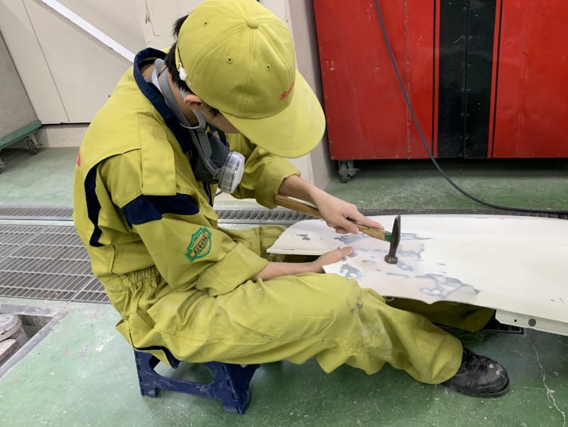 なるべく科・学年の投稿を均等にしたいなと思いながら、今年度の過去の投稿を見ていたらボディエンジニアコースの活動の様子が無いことに気づき慌てて実習場へ。例年よりスタートが遅かったから?練習用のフェンダーを使って板金の練習中です。練習あるのみ!頑張れ!!(yagawa)