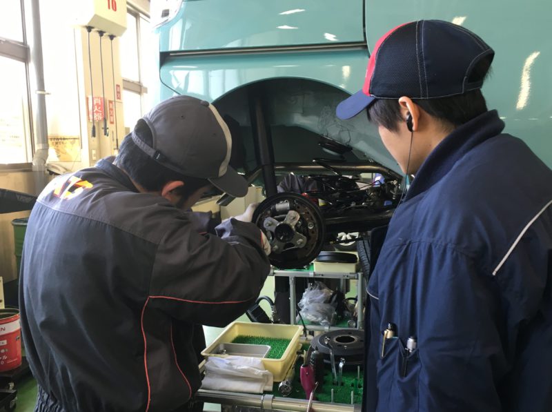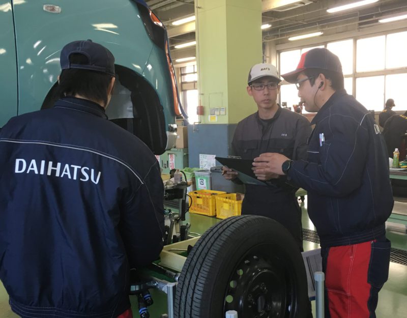 実習では①専用作業台を使用した整備、②外部診断機を使用した整備、③安全装置、福祉車両の体験などをローテーションで行っていただきました。