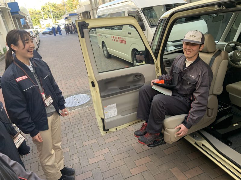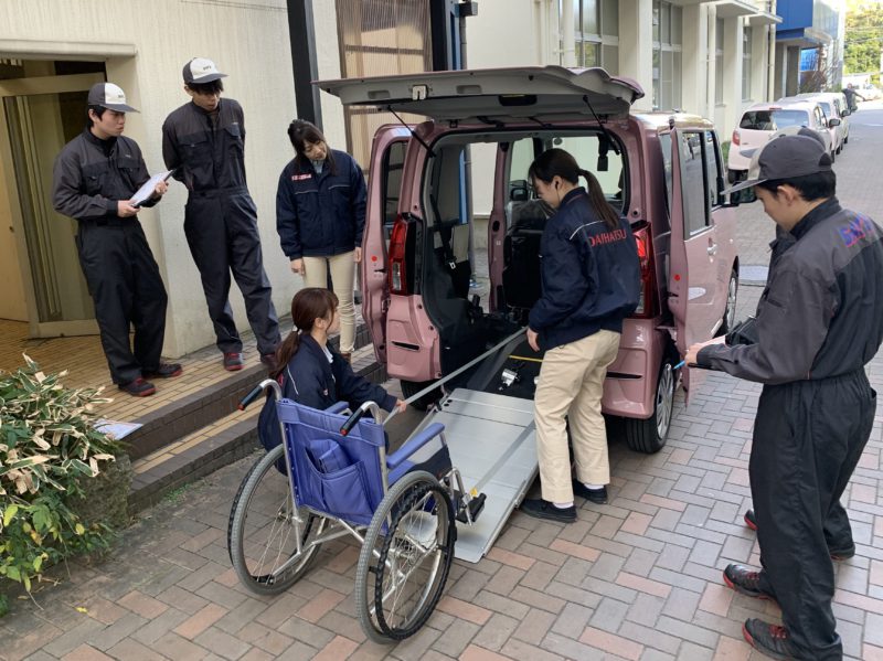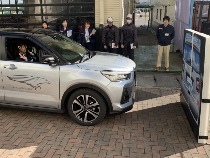 昨日16日午後の企業実習は静岡ダイハツ様でした。自動車システム工学科2班の受講です。福祉車両の体験、スマートアシストの体験、専用キャディを使用した点検の実施、測定機器とコネクトしたコンピュータによる定期点検記録簿の自動記載の体験など様々な項目を体験させていただきました。静岡ダイハツ様ありがとうございました。(yagawa)