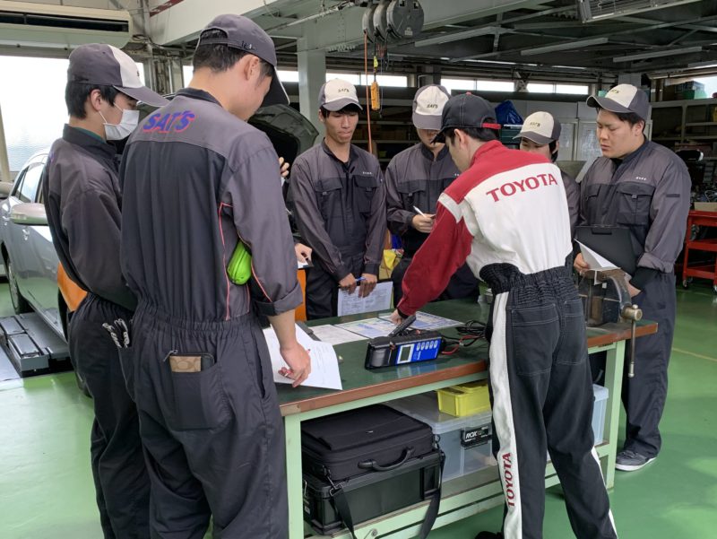 今日は10日の午後、静岡トヨタ様による企業実習の様子をお届けです。静岡トヨタ様は本社での実習なので自動車整備科3班は全員マイクロバスで移動。小グループに分かれ診断機による故障診断、最新型のクラウンのシステムを確認する同乗体験、トヨタセ-フティーセンスの体験、初代クラウンの見学など内容盛りだくさんの実習を体験しました。静岡トヨタ様ありがとうございました。(yagawa)