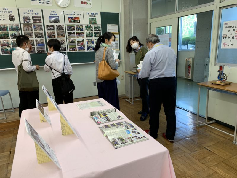 10月の11日、18日、25日の日曜日、静岡北高校で中学生対象の学校説明会が開催されました。本校も高・専一貫コースの自動車系のPRで参加してきました。若者のクルマ離れが進んでいると言われている昨今、確かに興味を示す中学生は少なく感じます。でも中にはクルマが好きで、好きで仕方がない生徒さんも少数派ではあるが確かに居る!クルマに詳しいスタッフ(我々)に目を輝かせて疑問を投げかけてくる子も・・・みんなおいでっ!楽しいよ!(yagawa)