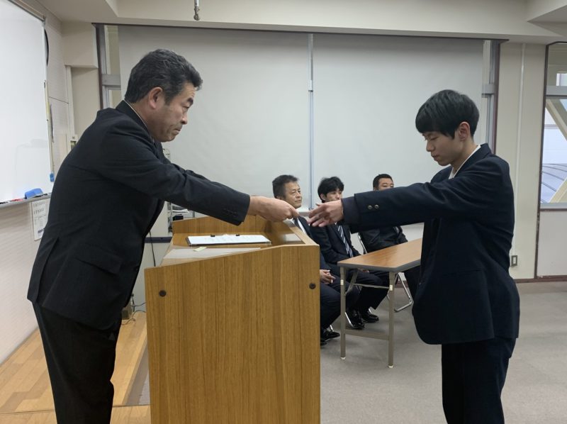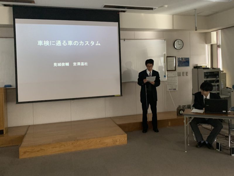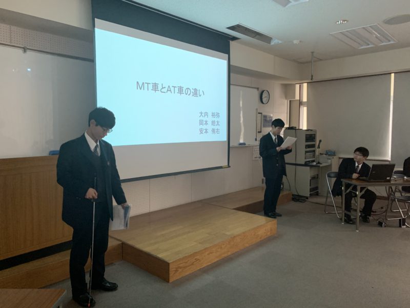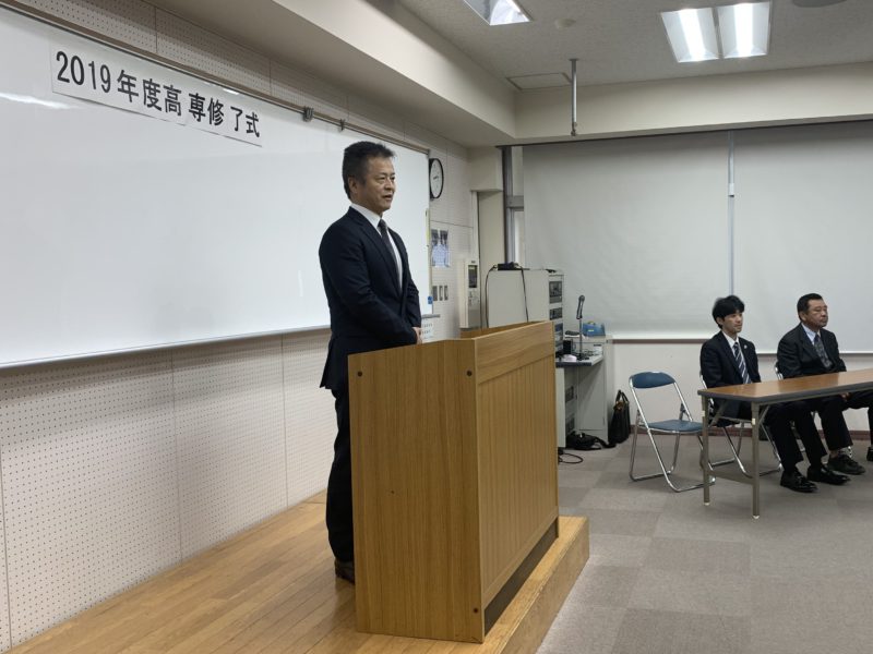 少し時間が過ぎてしまったんですが、高・専一貫コースの修了式が先日行われました。高・専一貫コースとは静岡北高校の生徒さんが2、3年次に週に2回(年間100時間)本校に来校し自動車に係る授業を受講するというものです。修了式では本校教務課長の高柳より終了証が授与され、静岡北高の山本校長からお祝いの言葉も頂戴しました。式典後は2~3人のグループで研究発表会も行われました。修了生は本校への進学が全員決まっています。(yagawa)