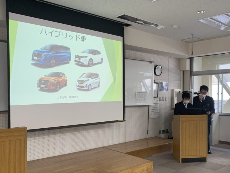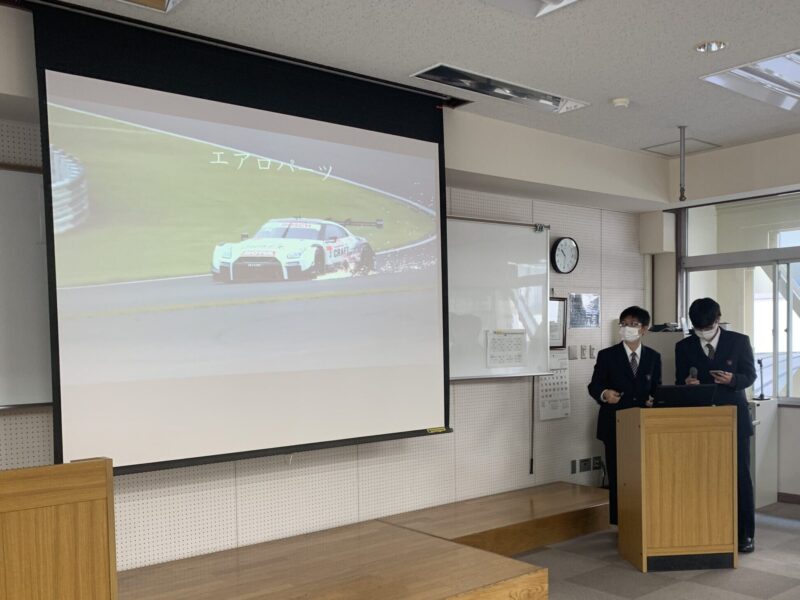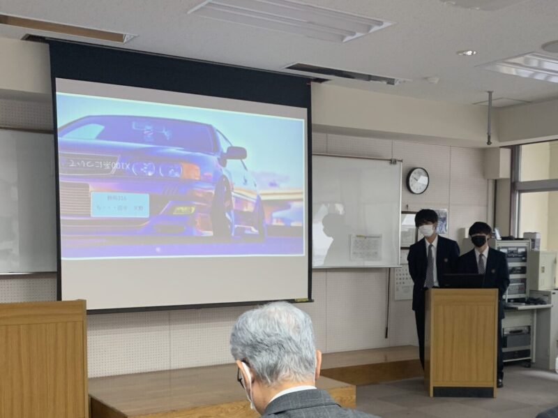 本日、高・専一貫コースの修了式が行われました。高・専一貫コースとは静岡北高校の生徒が2、3年次に週に2回(年間100時間)本校に来校し自動車に係る授業を受講するというものです。修了式では本校教務課長の浅田より修了証が授与されました。式典後は2人1組となり研究発表会も行われました。発表はクルマに関する課題研究です。修了生は本校への進学が決まっています。(yagawa)