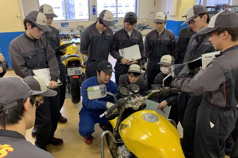 2輪車実習 今日は自動車整備科の1年生が2輪車整備の実習を受けています。瀧先生からFフォークの点検のポイントを聞いた後、それぞれの車両に戻り教えられたとおりに点検し液漏れやガタを確認していました。(yagawa) 自動車整備科 更新日:2019.01.31 この記事をシェアする Twitter Facebook LINE 前の記事へ 一覧へ戻る 次の記事へ