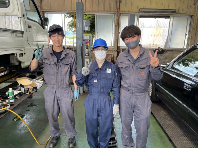 今回は伊豆箱根バス㈱様の青木君の様子です。先輩や卒業生に教えてもらいながら点検整備を行っていました。暑い中ですが先輩や上司も気遣ってくれ、楽しそうにお手伝いを行っていました。写真は左が卒業生の中野君、真ん中が在校生の青木、右が卒業生の吉野君です。(担任:中野)