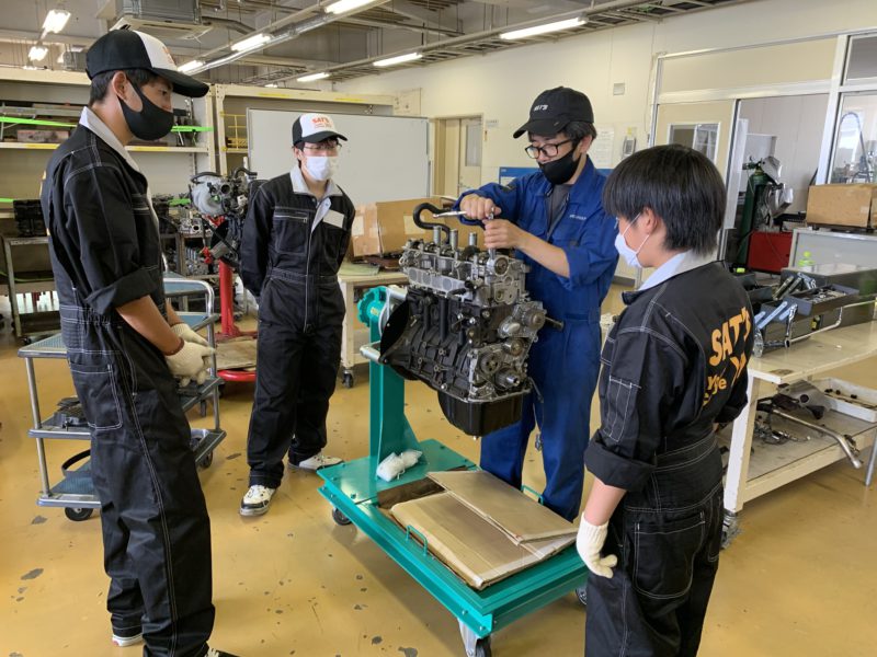 新型コロナウイルスの影響で7月にやっと開催できたSAT’Sユースカレッジ。8月の活動も23日に無事行うことが出来ました。今回は学内で初の実施。当日はエンジンの分解&組み立てを行いました。やっと配布できた新品のツナギ!みんなカッコイイ!!(当日は熱中症対策で帽子着用は任意としました。)(yagawa)
