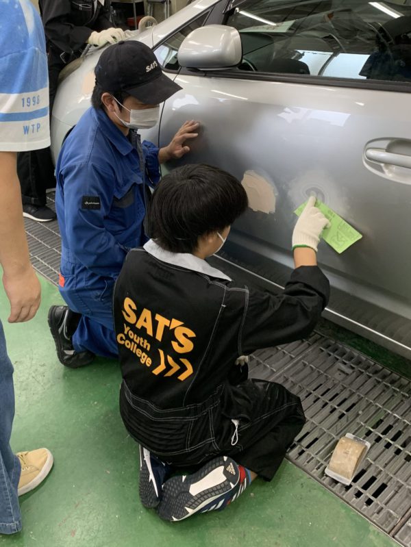 本年度、新型コロナウイルスの影響で7月スタートとなったSAT’Sユースカレッジ。9月の活動も13日に無事行うことが出来ました。今回は前回に引き続き学内で開催。今回はメンバー全員が揃っての鈑金体験です。パテの研ぎ方、付け方、研ぎ方からサフの塗り方まで実施しました。熱い中お疲れ様でした。(当日は熱中症対策で帽子着用は任意としました。)(yagawa)