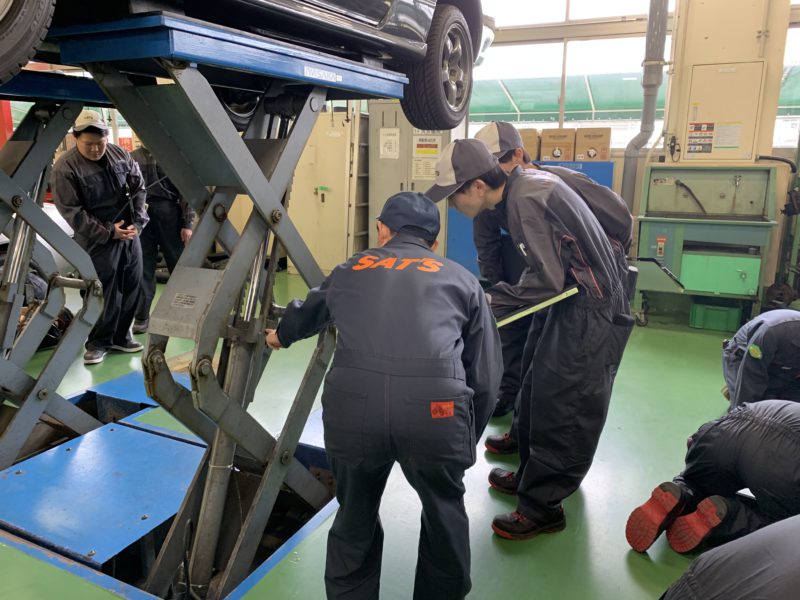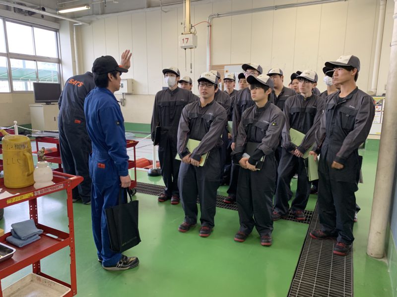 本日から自動車システム工学科、自動車科の1年生は本格的な授業がスタートしました。昨日までのガイダンスから専門科目のスタートです。実習場ではBクラス3班がシャシ系の授業をしています。本校では4年生が新1年生にリフトの操作方法、安全作業を説明するのが伝統です。1年生は教えられたことを真面目にメモに取り、緊張気味に操作していました。(yagawa)