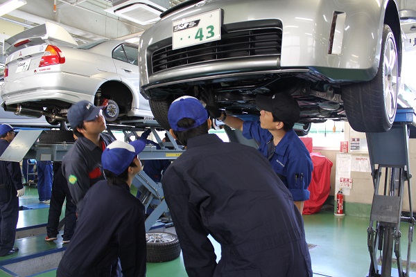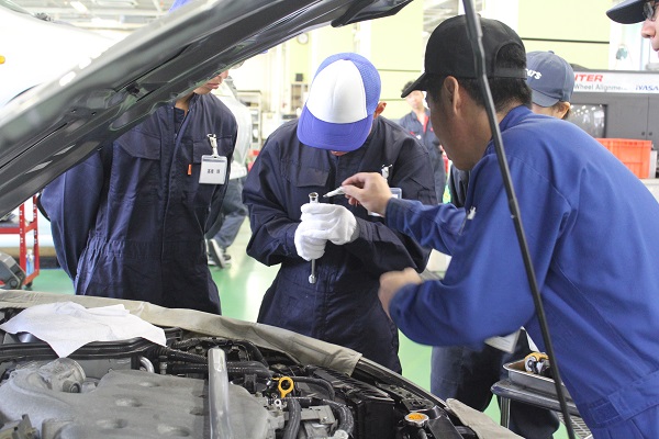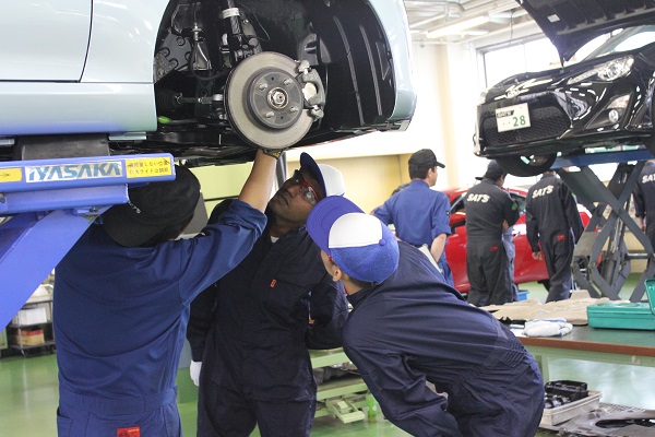 静岡工科自動車大学校は外国人留学生も科もあるため、多くの留学生も整備体験に来てくれます。