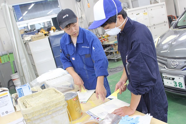 キズがついたクルマのなおし方を学べるボディリペアの体験も人気です。