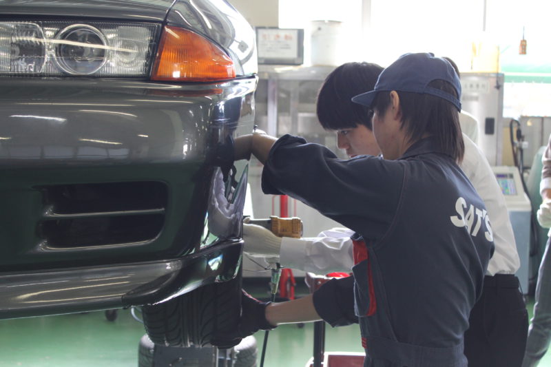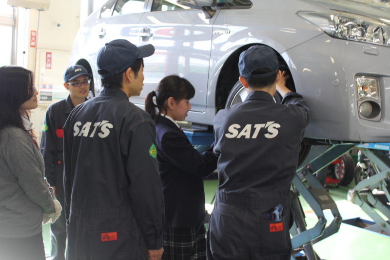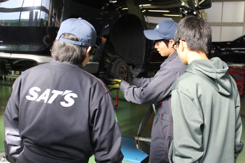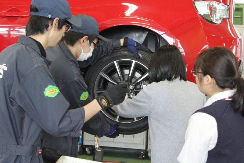 自動車システム工学科3年生の学生にお手伝い頂きタイヤの脱着やその他の軽作業を体験したり、施設の見学などを行いました。