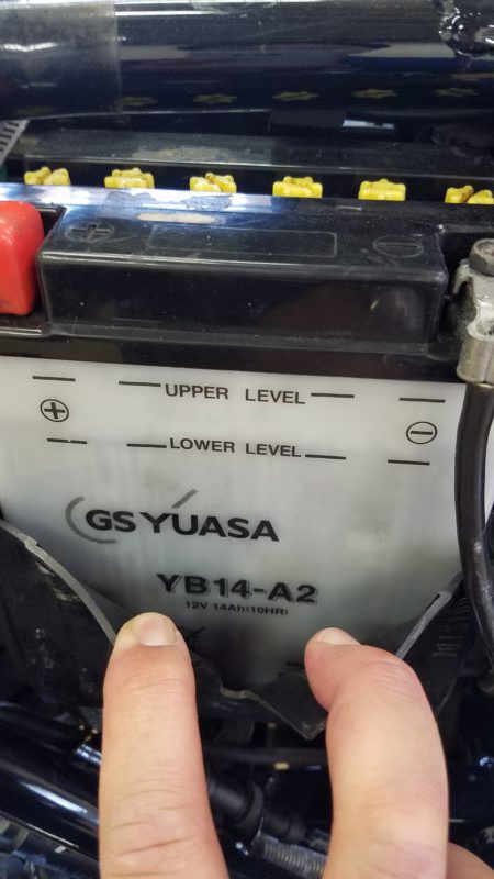 しかしその分、気軽の乗れないとの事であまり距離は進んでおらず相対的に各部の消耗も少なく、エンジンオイルとブレーキフルード、ご用命事項のバッテリー交換、チェーンや各部の清掃、グリスアップを行いしっかり性能を取り戻しました。