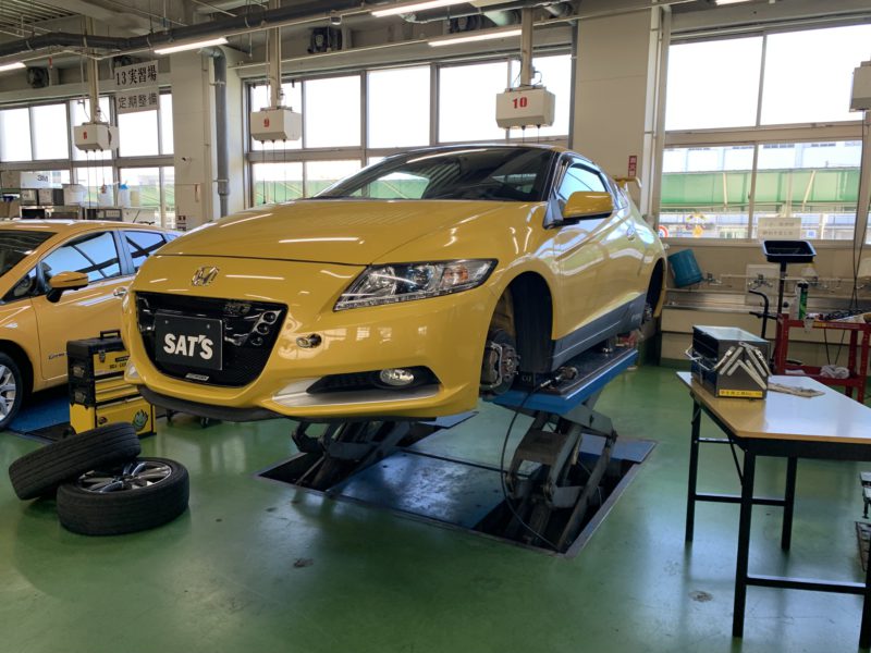 開発エンジニアコースは今週末富士スピードウェイで行われるエコカーカップに参戦します。昨日、某所で走行練習を行い感触を味わってきました。本日学生は振替でお休みなので、総監督の三井先生が本番に向けタイヤ交換をしています。海外製のコスパが良いタイヤだそうです。(yagawa)