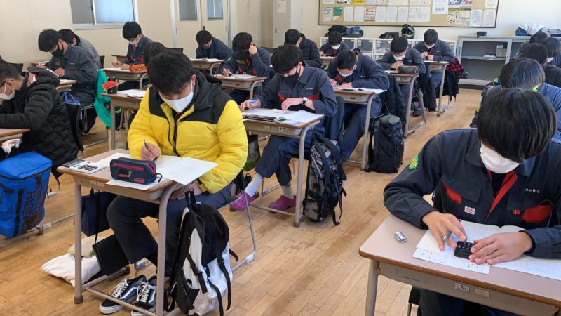 今日は自動車システム工学科の4年生がJAMCAの全国模試の筆記試験を受けています。JAMCA(ジャムカ)とは全国自動車大学校・整備専門学校協会の略称で、全国の1級・2級整備士専門課程の専門学校約50校が会員として登録しています。会員校の学生の中で3月に1級整備士の登録試験を受験する学生が、本日一斉に同じ模擬問題にチャレンジしています。数日後、全国の中で自分の順位がわかります。(yagawa)
