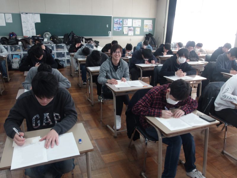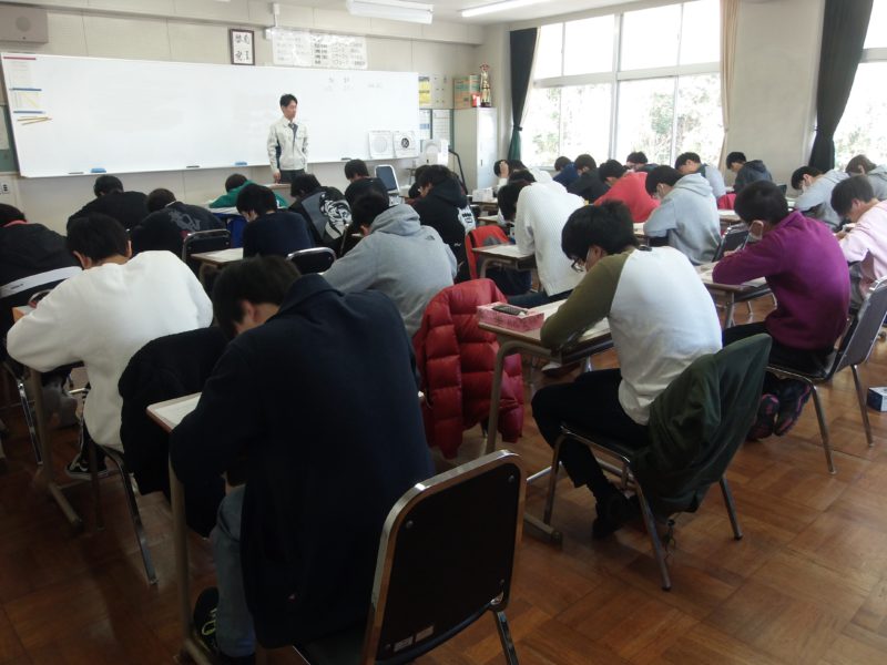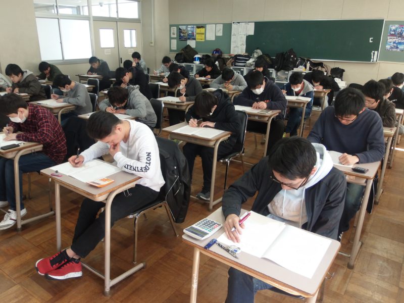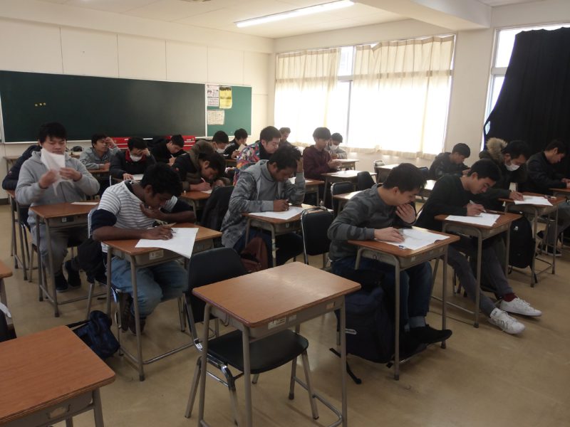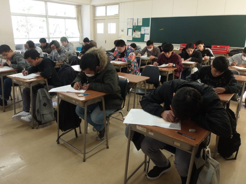 今日はJAMCA3級模擬試験が行われ、本校の自動車システム工学科、自動車整備科、国際オートメカニック科の1年生が受験しました。JAMCA(ジャムカ)とは全国自動車大学校・整備専門学校協会の略称で現在50校が加盟しており、加盟校の1年生が一斉に模擬試験を実施したものです。2級整備士を目指す学生ですが、1年間が終了するこのタイミングでガソリン、ジーゼル、シャシの3級模擬試験を受験します。模試なので今日は私服です。(yagawa)