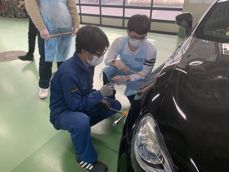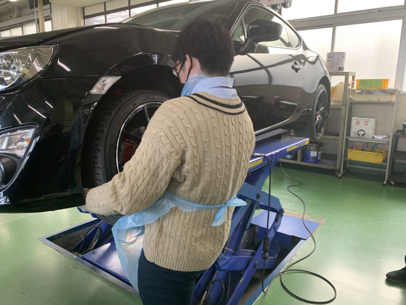 簡単な学校説明の後、プチ整備を体験していただきました。